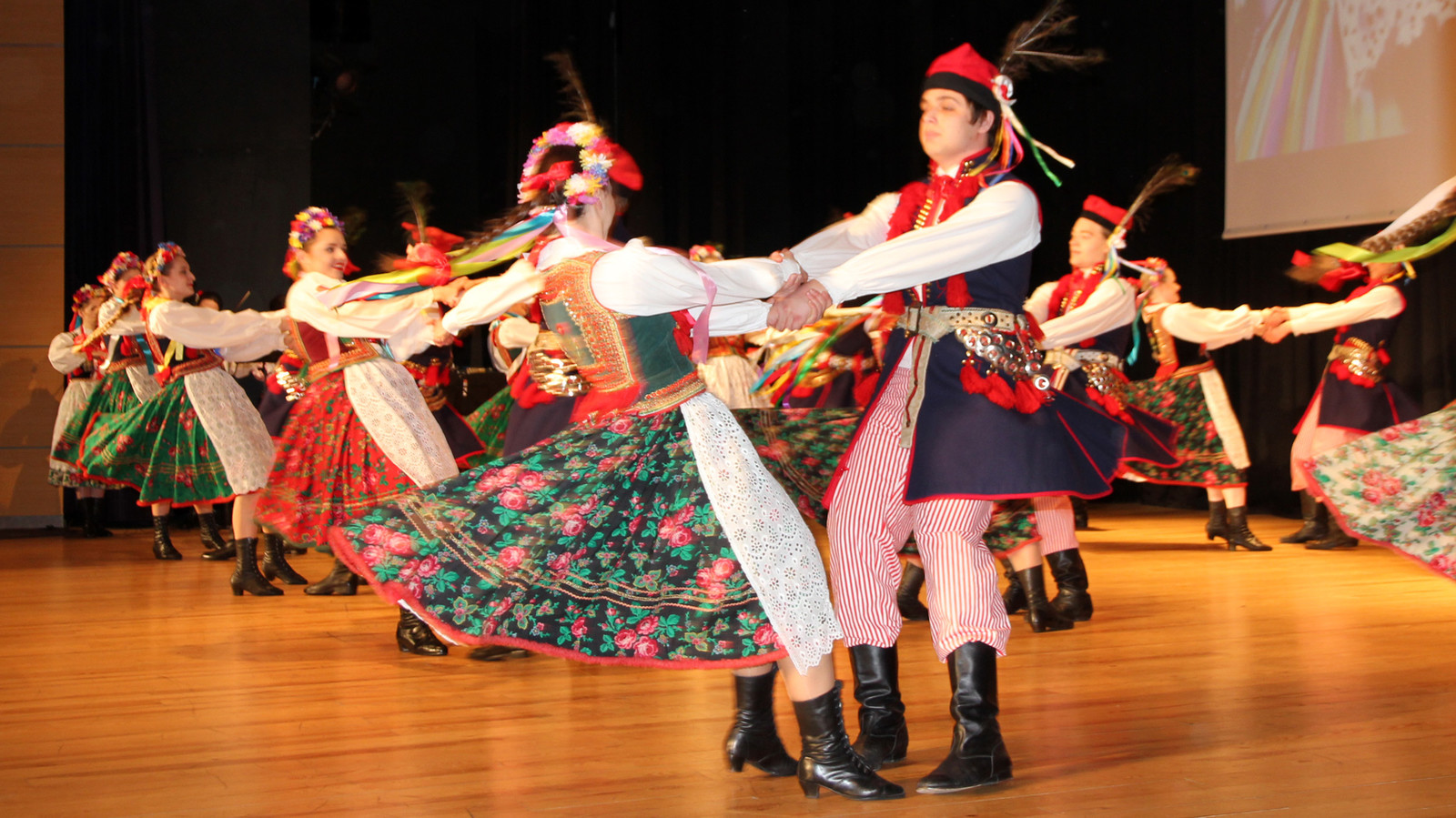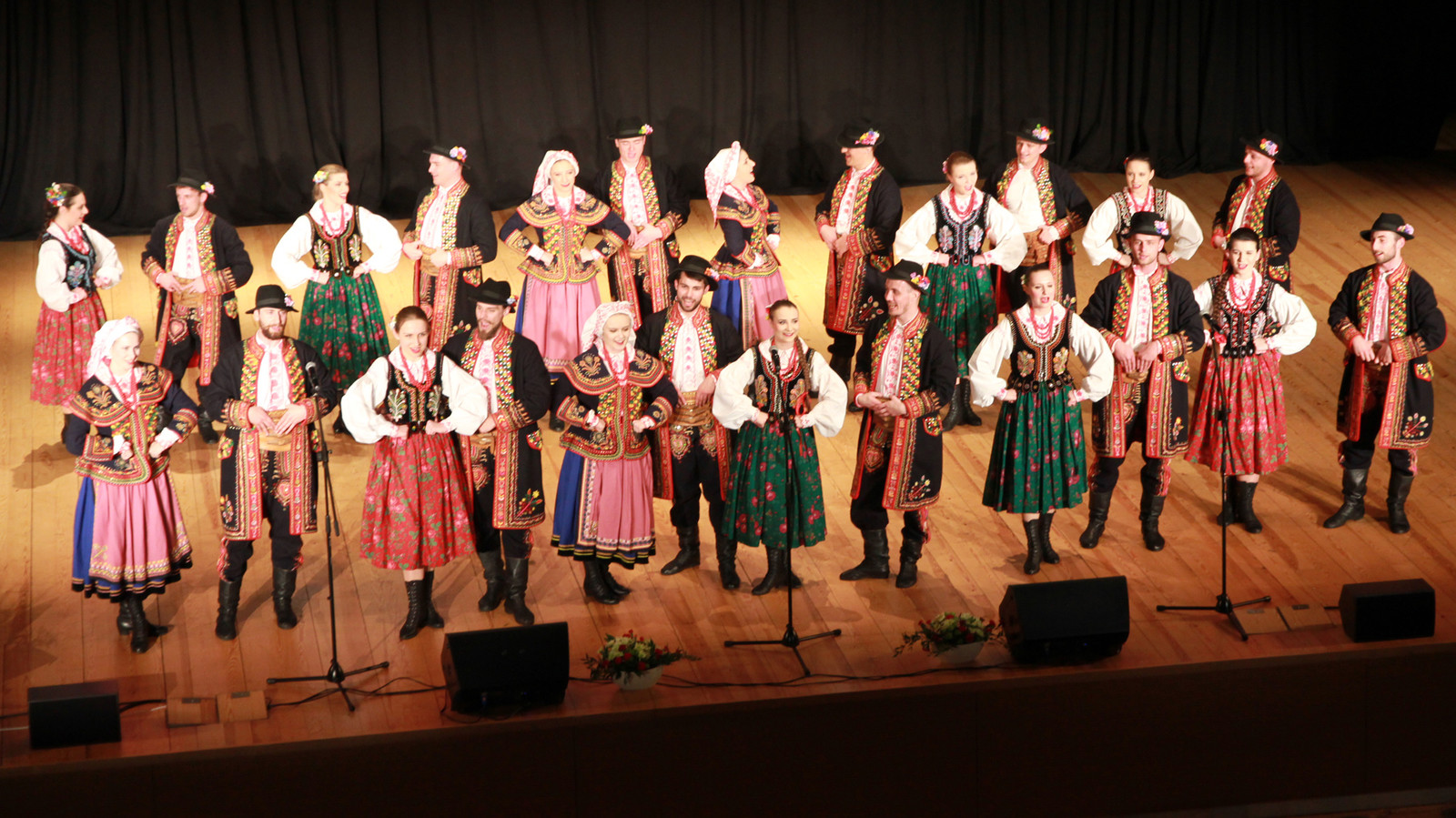 Podczas koncertu można było zobaczyć barwne tańce narodowe: poloneza i krakowiaka, zabawną polkę warszawską oraz dynamiczne tańce ludowe: sądeckie, Krakowiaków Wschodnich , przeworskie i rzeszowskie. Zespół zaśpiewał również piękne pieśni „Kochajmy się bracia mili”, „Kraj rodzinny matki mej”, „Maki” i „Olszynkę”.