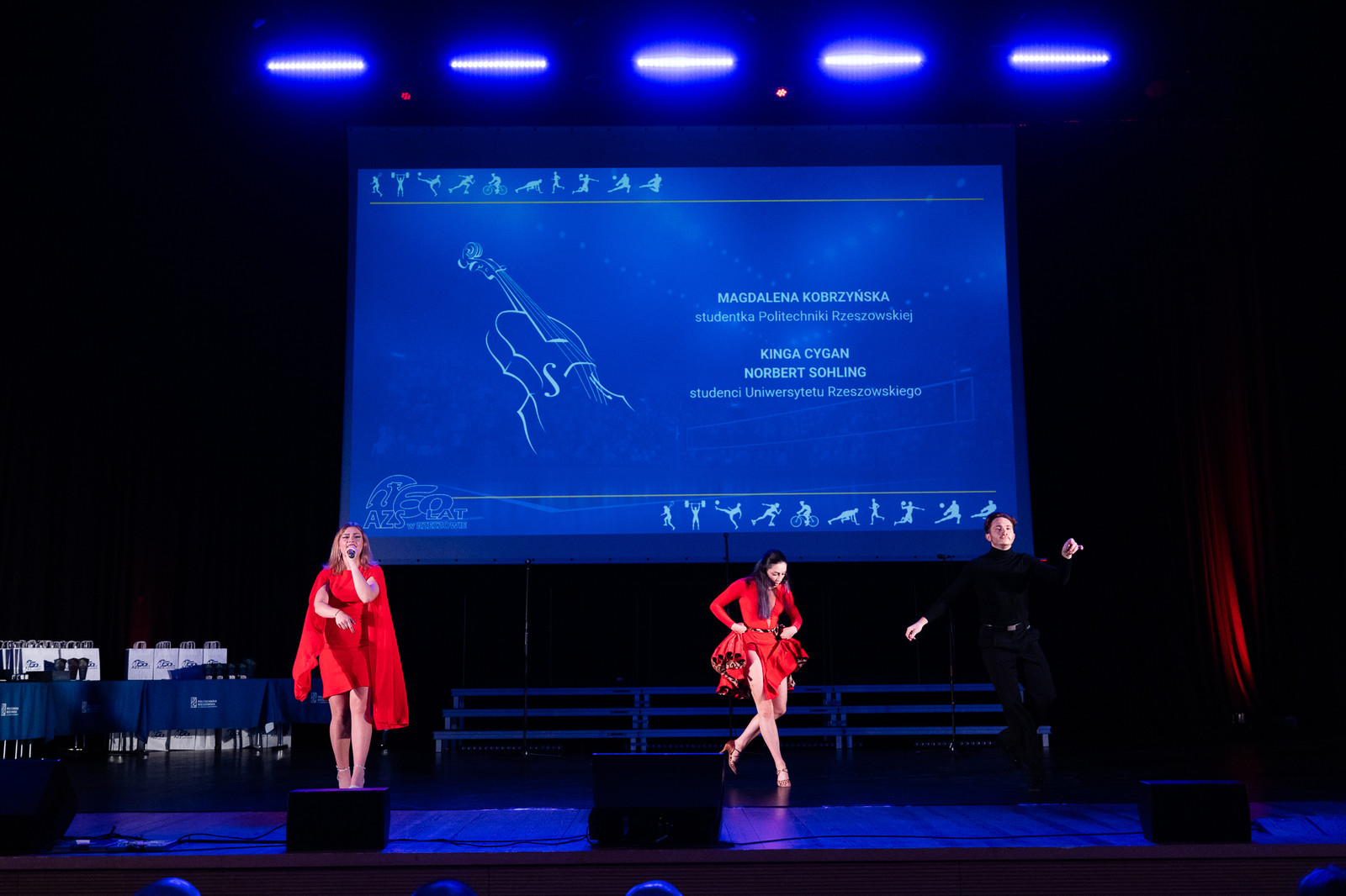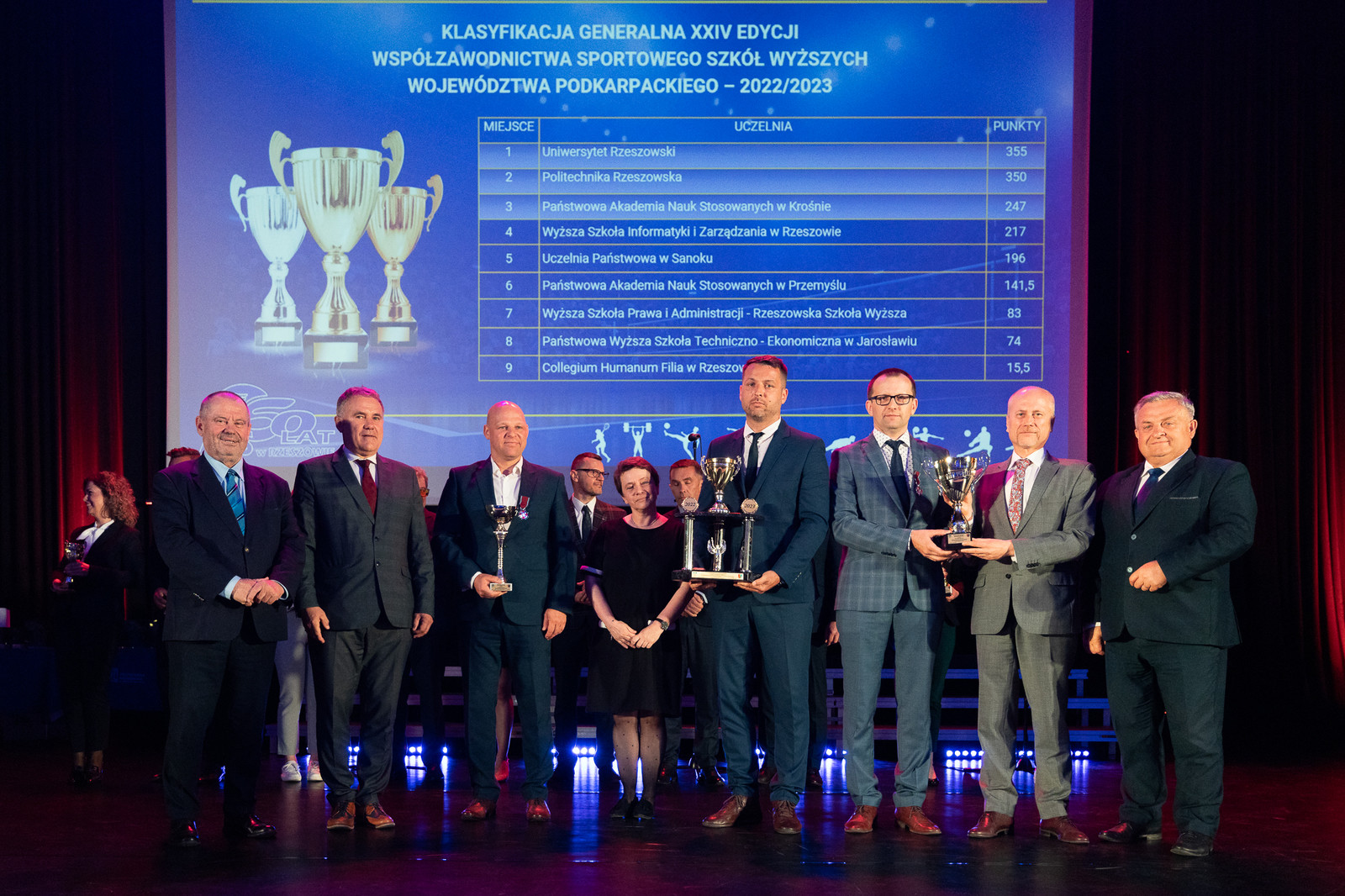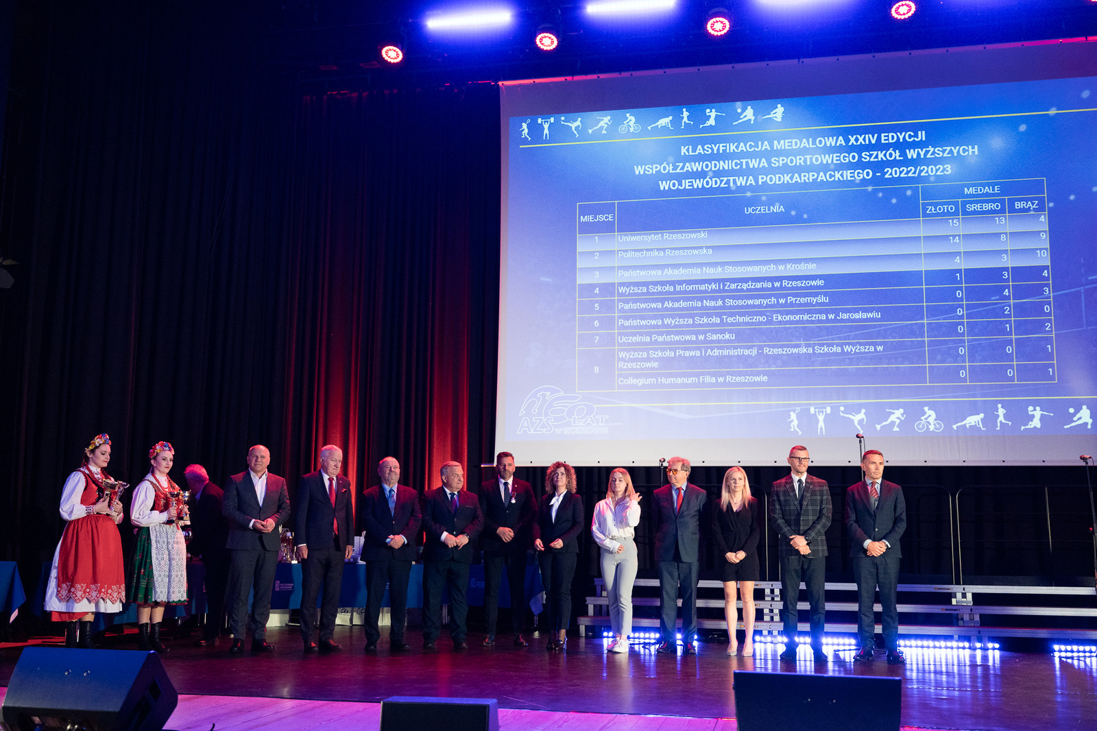 W uroczystości jubileuszowej wzięły udział ważne dla AZS osoby, m.in.: wicewojewoda podkarpacki Radosław Wiatr, członek Zarządu Województwa Podkarpackiego Stanisław Kruczek, przedstawiciel prezydenta Miasta Rzeszowa Tadeusz Szylar, prezes Zarządu Głównego AZS prof. dr hab. Alojzy Nowak wraz z członkami zarządu liczącego 32 osoby, sekretarz generealny AZS Dariusz Piektut, prezes AZS Rzeszów Janusz Zieliński, prorektorzy Politechniki Rzeszowskiej: prof. dr hab. inż. Jarosław Sęp, prof. dr hab. Grzegorz Ostasz, dr hab. inż. Lesław Gniewek, prof. PRz oraz prorektor Uniwersytetu Rzeszowskiego dr hab. Elżbieta Rokosz, rektor Państwowej Akademii Nauk Stosowanych w Krośnie dr hab. Zbigniew Barabasz, prof. PANS, dyrektor Biura Rektora Państwowej Wyższej Szkoły Techniczno-Ekonomicznej w Jarosławiu mgr Artur Świątek, prorektor Państwowej Akademii Nauk Stosowanych w Przemyślu dr Robert Oliwa, prorektor Wyższej Szkoły Informatyki i Zarządzania w Rzeszowie dr Małgorzata Gosek, a także około 300 byłych i obecnych zawodników, działaczy i sympatyków AZS oraz przedstawiciele mediów oraz firm wspierających codzienną działalność AZS.