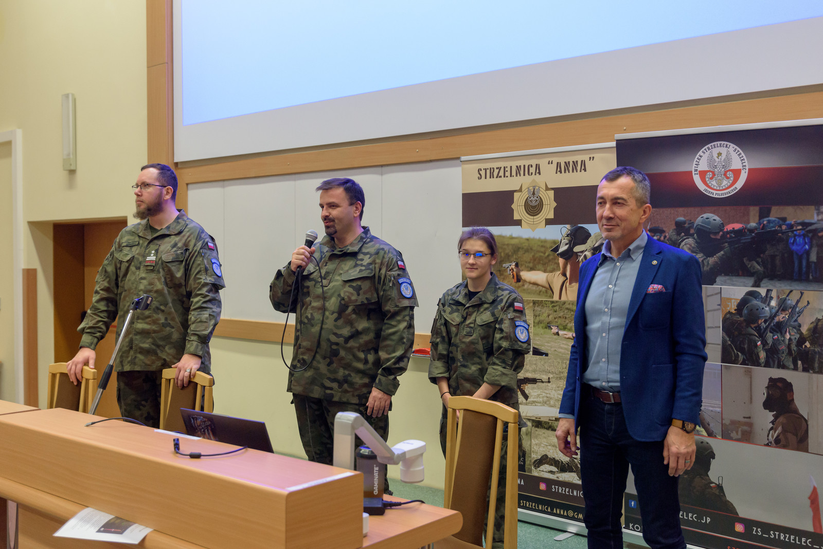 Spotkanie otworzył prorektor ds. studenckich prof. dr hab. Grzegorz Ostasz, a poprowadzili je szef Sztabu insp. ZS Miłosz Elgass, st. chor. ZS Artur Polakiewicz oraz członkowie Sztabu Komendy Głównej ZS „Strzelec”. Uczestnicy zostali zapoznani z taktyczną i szkoleniową ofertą Związku oraz obszarami rozwoju personalnego i społecznego, możliwościami rozwoju pasji i zainteresowań. Prezentowane podczas spotkania filmy przybliżyły pracę Związku Strzeleckiego, prezentując kursy i przeszkolenie proobrone, wspólne ćwiczenia ze służbami mundurowymi, a także akcje pomocowe i humanitarne oraz działania na rzecz solidarności i więzi międzypokoleniowej.