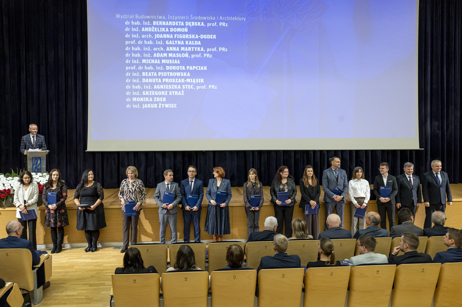 • z Wydziału Budownictwa, Inżynierii Środowiska i Architektury dr hab. inż. Lesław Bichajło, prof. PRz, dr hab. inż. Małgorzata Kida, prof. PRz, dr hab. inż. arch. Anna Martyka, prof. PRz, dr hab. Tomasz Tomaszek, prof. PRz,