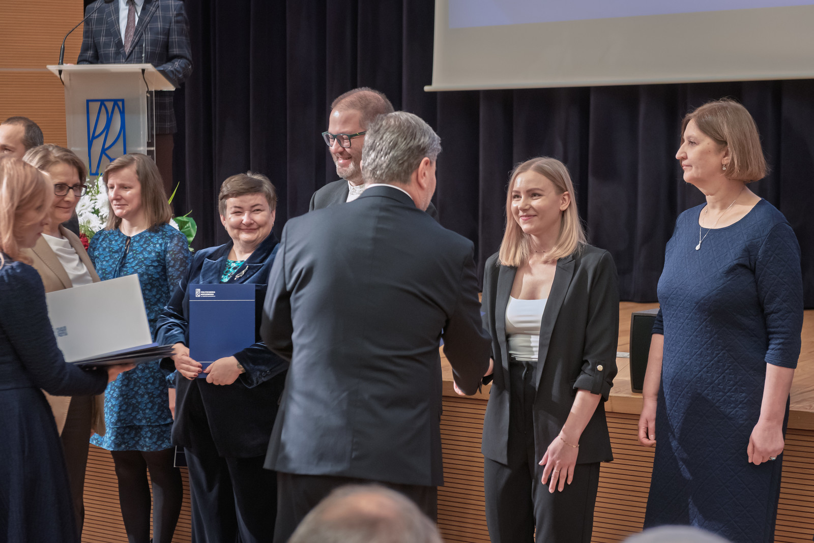 Uroczystość poprowadził prorektor ds. nauki dr hab. inż. Lesław Gniewek, prof. PRz. Dyplomy nagród wręczył rektor prof. dr hab. inż. Piotr Koszelnik. w towarzystwie dziekanów.