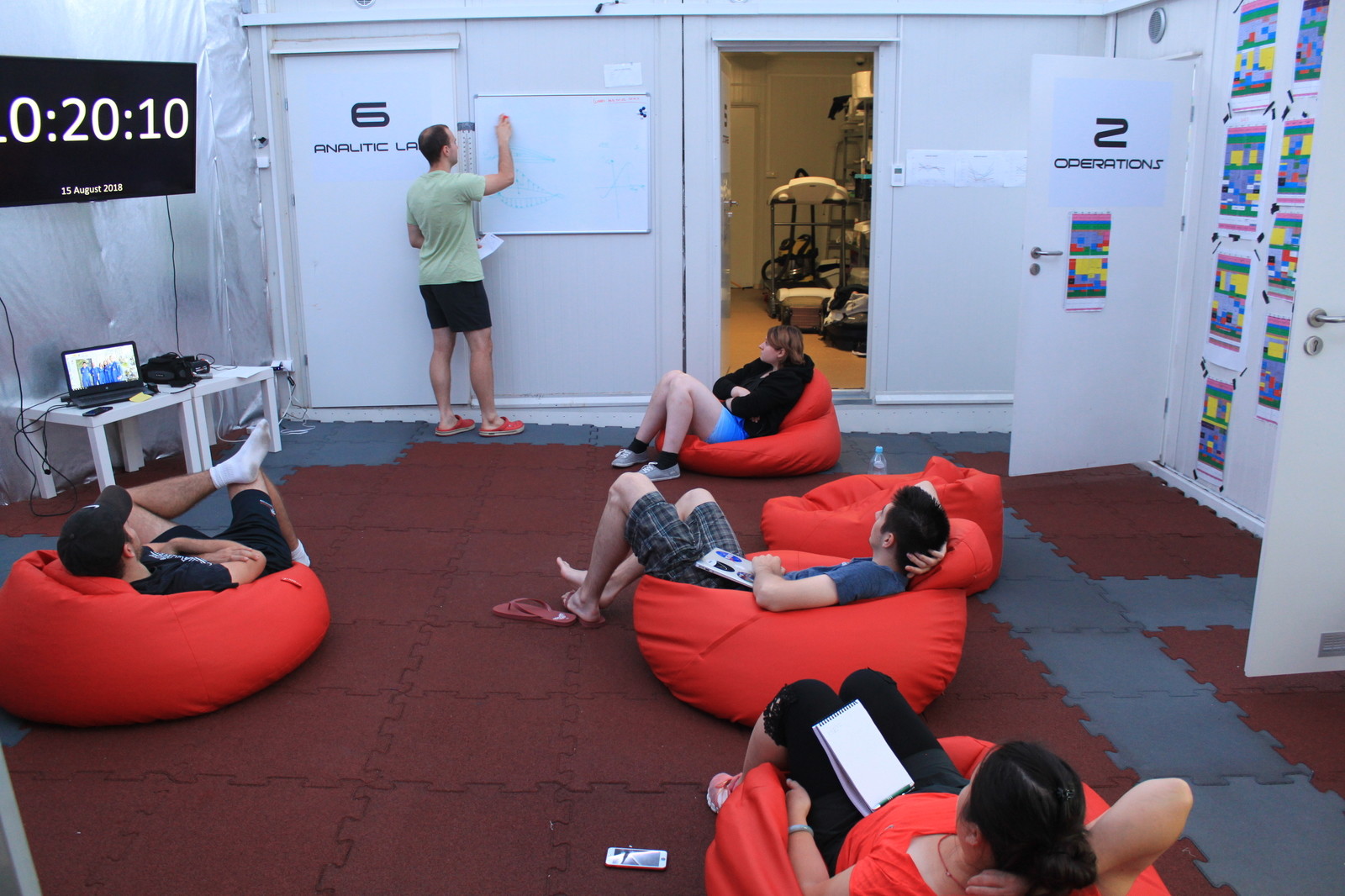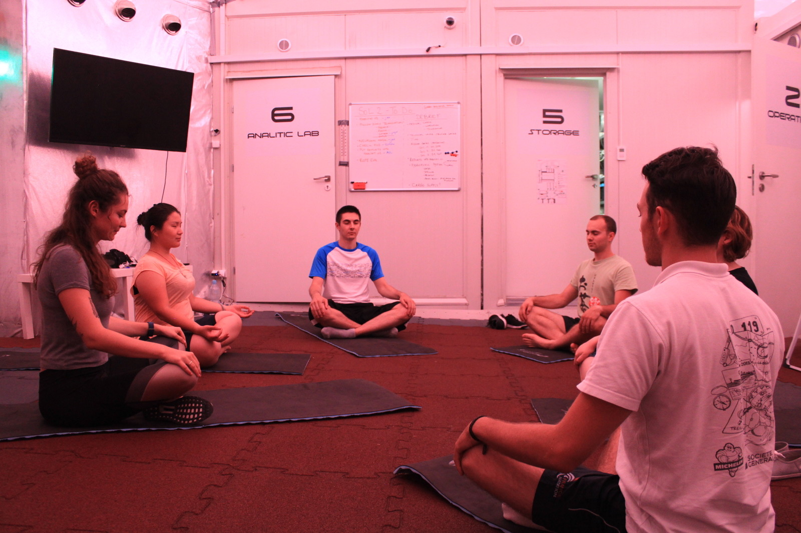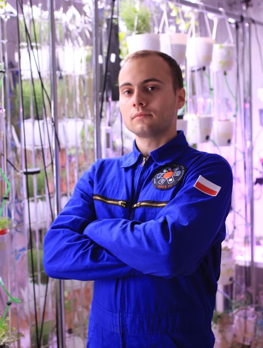 W habitacie mieliśmy cały system hydroponiczny, pionowy ogród, który hoduje rośliny nie używając gleby, rośliny są osadzone w porowatych granulkach, które zatrzymują, ale i przepuszczają wodę. Podlewając górne części, system irygacji rozprowadza wodę dalej. Hodowaliśmy tylko rośliny jadalne takie jak sałata, rukiew wodna i rzeżucha. Badania nad nimi trwają od początku istnienia habitatu, a naszym zadaniem były codzienne obserwacje ich wzrostu i reakcji na odmienną, marsjańską długość doby. Jeden z członków załogi Patrick prowadził własne eksperymenty nad uprawianiem roślinności na symulancie gleby marsjańskiej - regolicie. Sprawdzał m.in. wpływ dodawania ludzkich wydzielin fizjologicznych do gleby, by ją użyźnić. Prowadzone były też badania na 20 karaluchach madagaskarskich, jednych z największych na świecie (8-10 cm). Obserwowaliśmy ich zachowania, zmiany w wadze ciała i długości czułków. W badaniu brały udział dwie grupy. Pierwsza badawcza była trzymana większość czasu w całkowitej ciemności, natomiast druga - kontrolna miała regularny dostęp do symulowanego światła słonecznego (odpowiednie LEDy RGB). Chcieliśmy sprawdzić, jakie zmiany zachodzą przy tak skrajnie różnych warunkach oświetlenia, tzn. czy karaluchy odcięte od światła będą bardziej agresywne, czy mniej aktywne, czy zmieni się ich cykl aktywności dziennej, itp.
