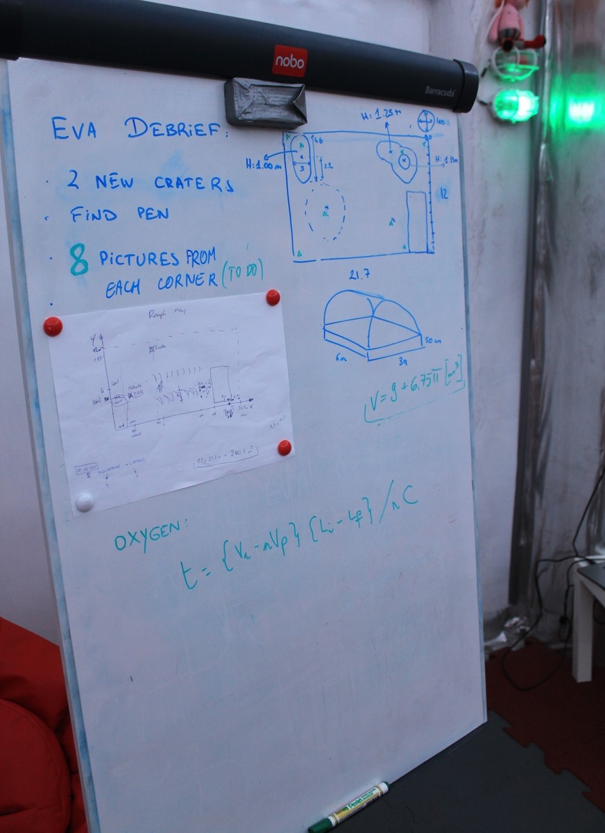 Każdego dnia ustalaliśmy wspólny harmonogram na dwa dni do przodu, dzieląc pracę na każdego członka załogi. Dzieliliśmy czas na posiłki, sport, badania, przerwy, tak by każdy wiedział, ile i na co powinien go poświęcić. Codziennie śledziliśmy nasze grafiki i sprawdzaliśmy czy wykonamy zadania na czas. Naszą codzienną pracą były eksperymenty naukowe, np. hodowanie bakterii, karaluchów, obsługa drukarki 3D, wyjścia na powierzchnie symulowanego Marsa, itd. Prowadziliśmy także testy kognitywne, które sprawdzają czas reakcji, pamięć krótkotrwałą, zdolność do logicznego myślenia i dedukcji. Takich eksperymentów było całkiem sporo, największe prowadziła pani komandor Angelique z Belgii. Składaliśmy raporty za pomocą testowanego systemu HabitatOS, każdy z nas wprowadzał do niego dane medyczne, zużytej wodzie pitnej, wodzie technicznej. Składaliśmy raporty dzienne, medyczne i inne. Jako oficer komunikacji byłem odpowiedzialny za codzienną komunikację z Centrum Kontroli Misji.